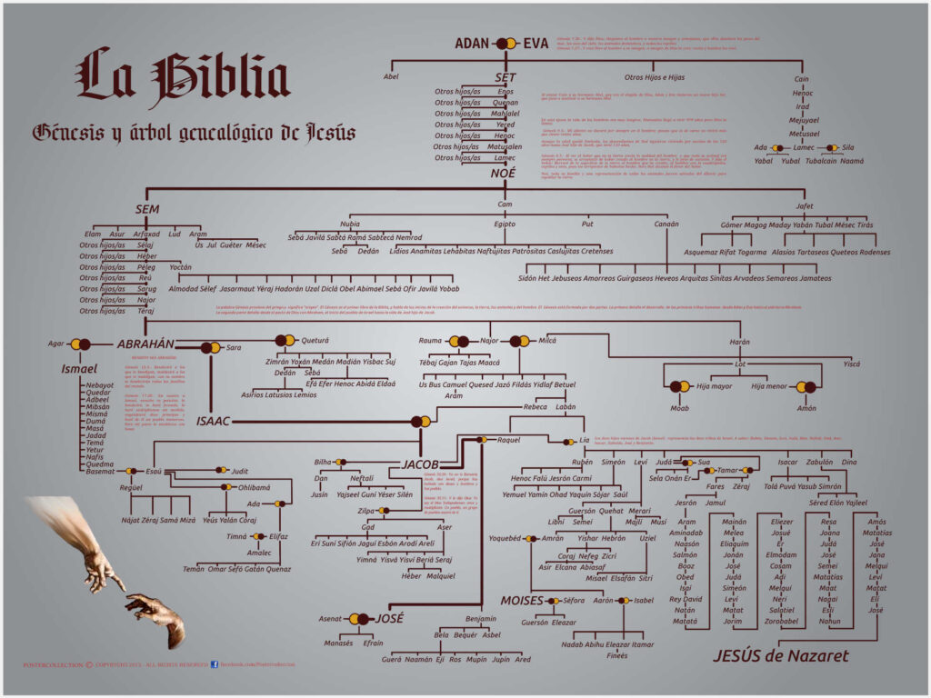 Algunos de los personajes importantes en el árbol genealógico de la Biblia desde Adán y Eva incluyen a Abraham, Moisés y Noé.