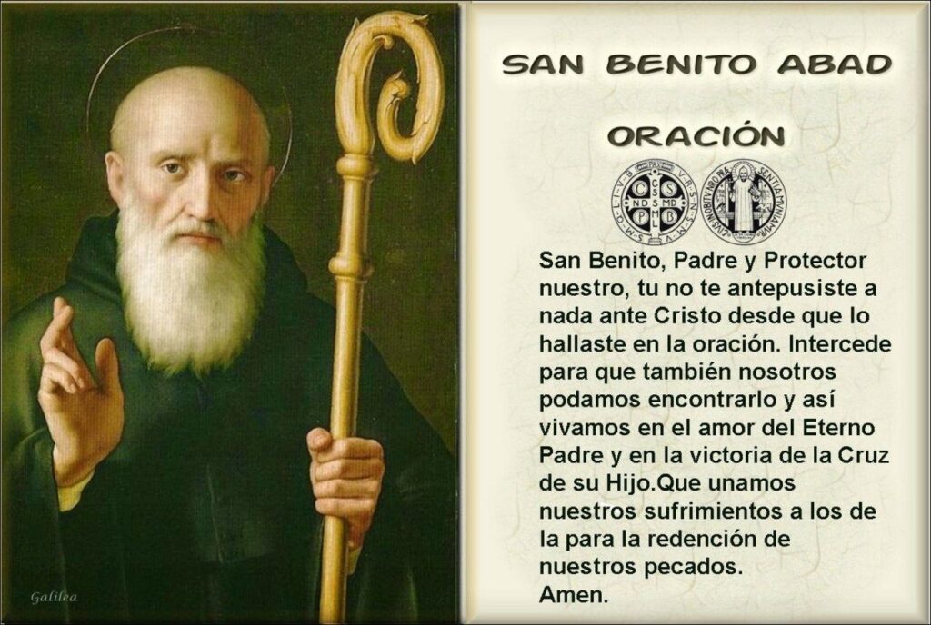 Oh glorioso San Benito, santo de la bondad y de la misericordia, te pido que intercedas por mí ante Dios y me ayudes a encontrar el amor verdadero o a fortalecer el amor que ya tengo en mi vida. Protégeme de las tentaciones y del mal que puedan afectar mi relación, y ayúdame a ser fiel y compasivo con mi pareja. Bendíceme con tu gracia y amor divino, para que pueda amar como Dios ama y ser una fuente de amor y felicidad para todos los que me rodean. Amén.