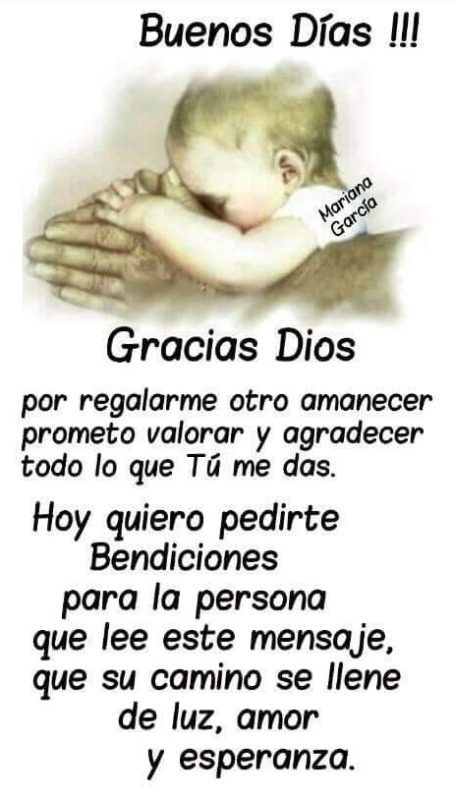 - "Señor, gracias por otra oportunidad de vivir. Por favor, ayúdame a ser una luz para los demás hoy y a hacer tu voluntad en todo lo que haga".