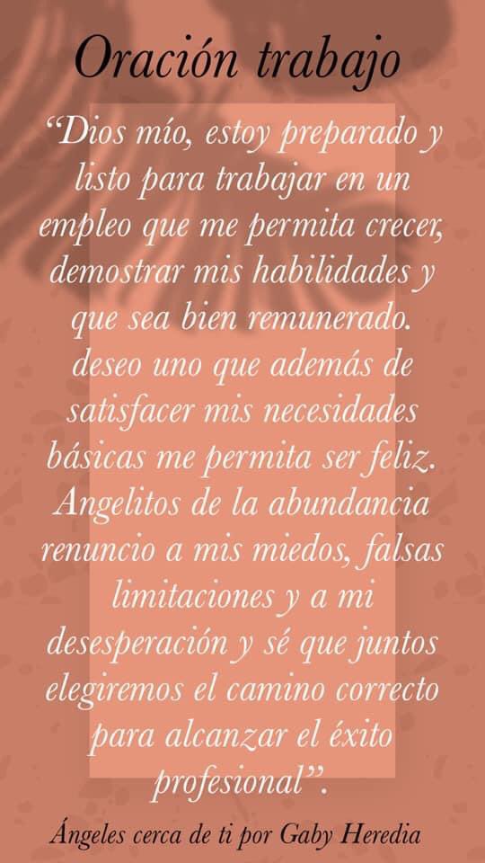 La oración para el trabajo puede ser personalizada de acuerdo a tus necesidades y creencias. Aquí te compartimos una oración que puedes utilizar: