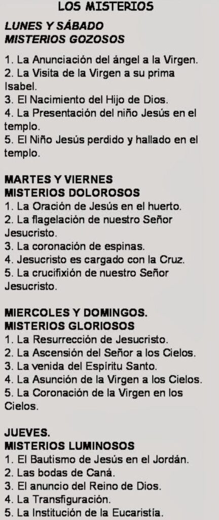 9. Se repiten los pasos 6, 7 y 8 para los cuatro misterios restantes.